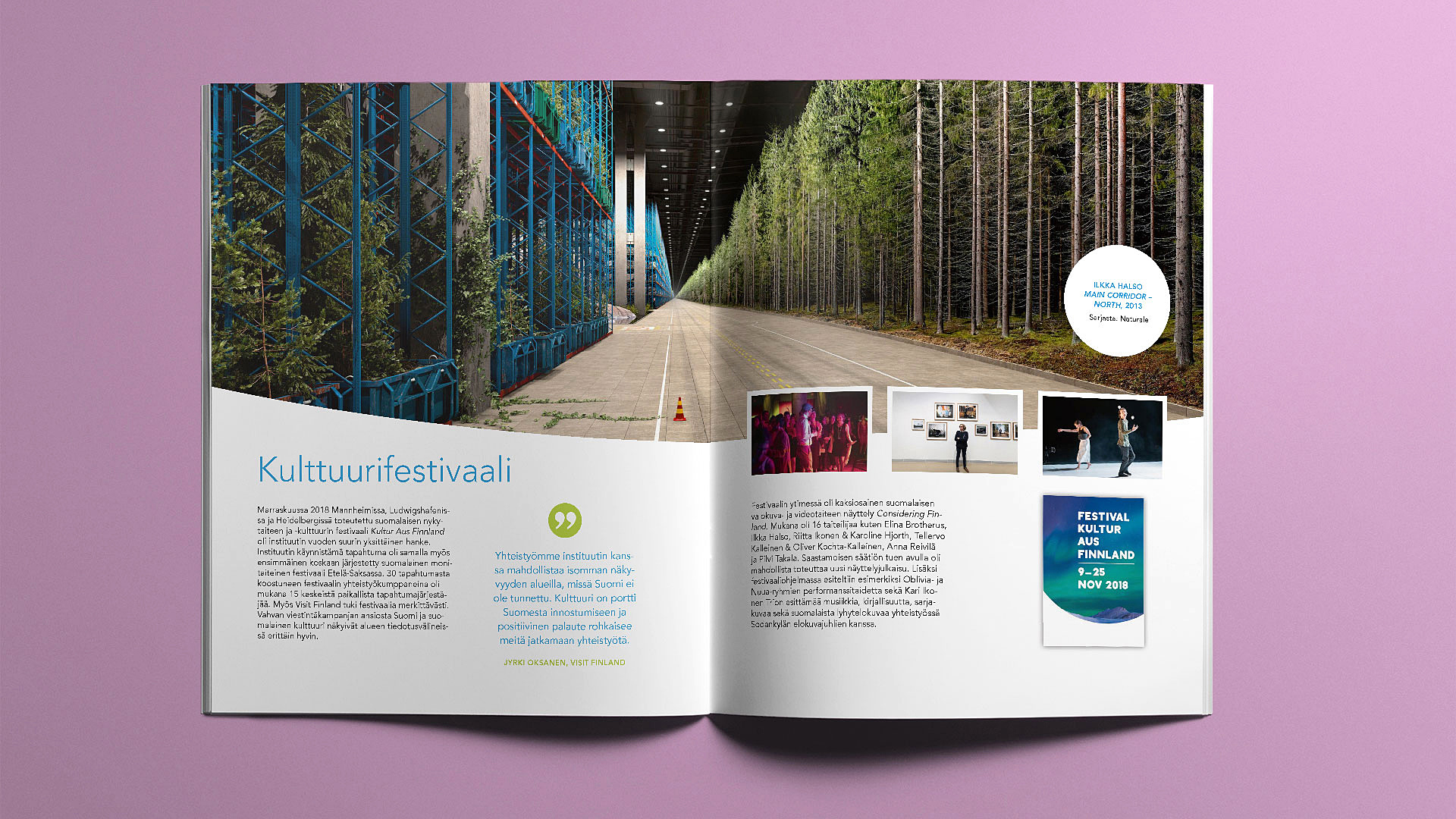 Für das Logo des Finnland-Instituts in Deutschland habe ich die organischen Formen Alvar Aaltos mit der Silhouette Finnlands kombiniert. Ein spielerischer Umgang mit dieser Bildmarke ist die Basis des Corporate Designs.