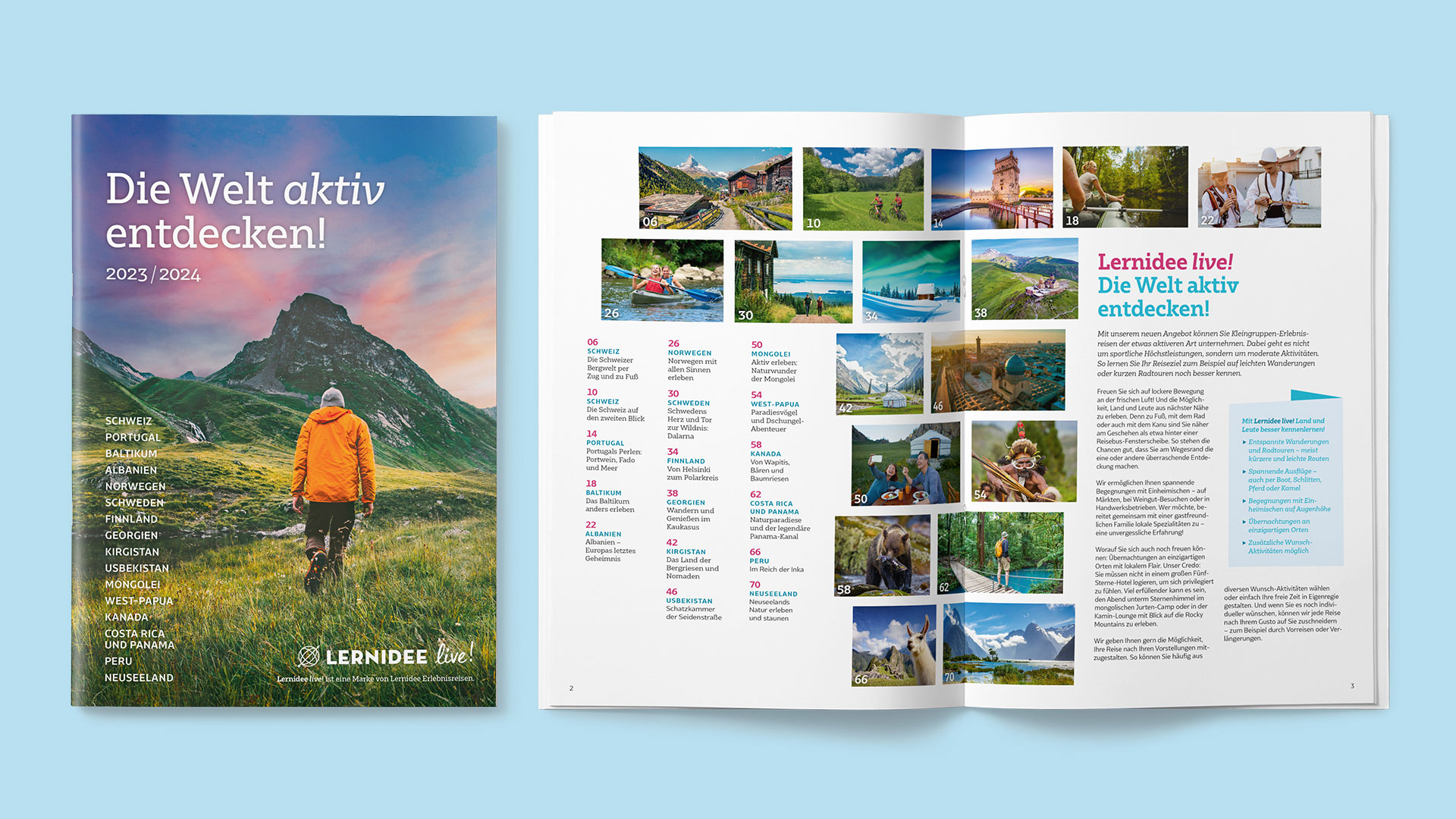 Lernidee live! ist eine Marke meines Kunden Lernidee Erlebnisreisen, bei der die Kunden in kleineren Gruppen aktiv und auf Augenhöhe neue Länder erkunden. Denn zu Fuß, mit dem Rad oder auch mit dem Kanu sind sie noch näher am Geschehen als hinter einer Fensterscheibe im Reisebus.