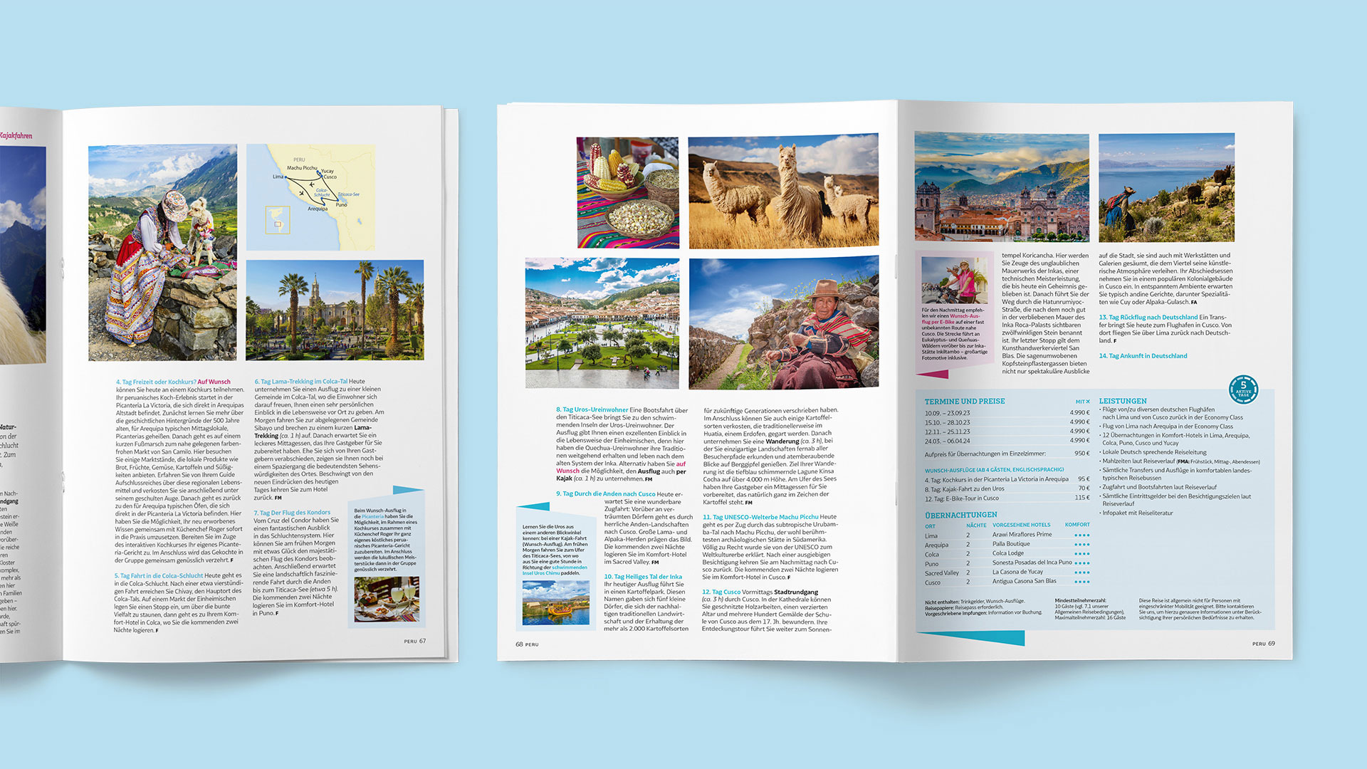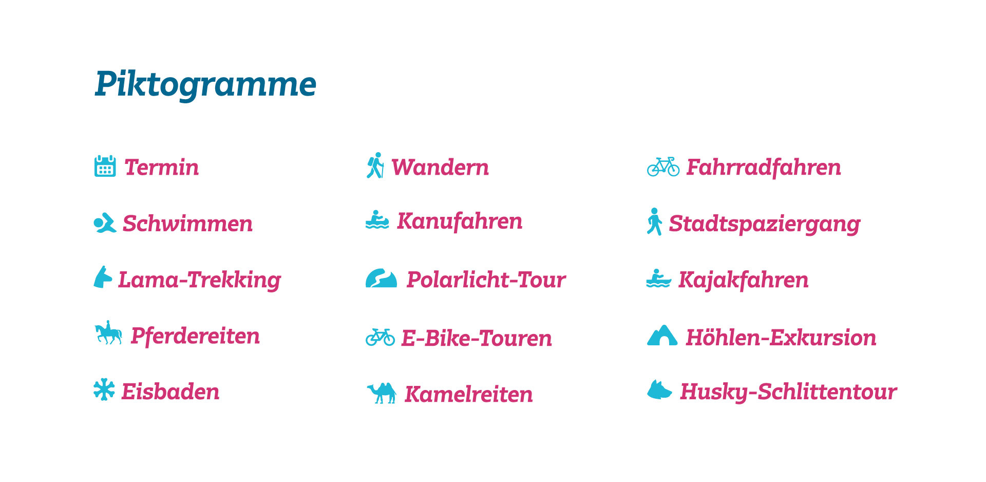 Fester Bestandteil jeder Reise sind aktive Reise-Elemente, die mit Piktogrammen illustriert werden.